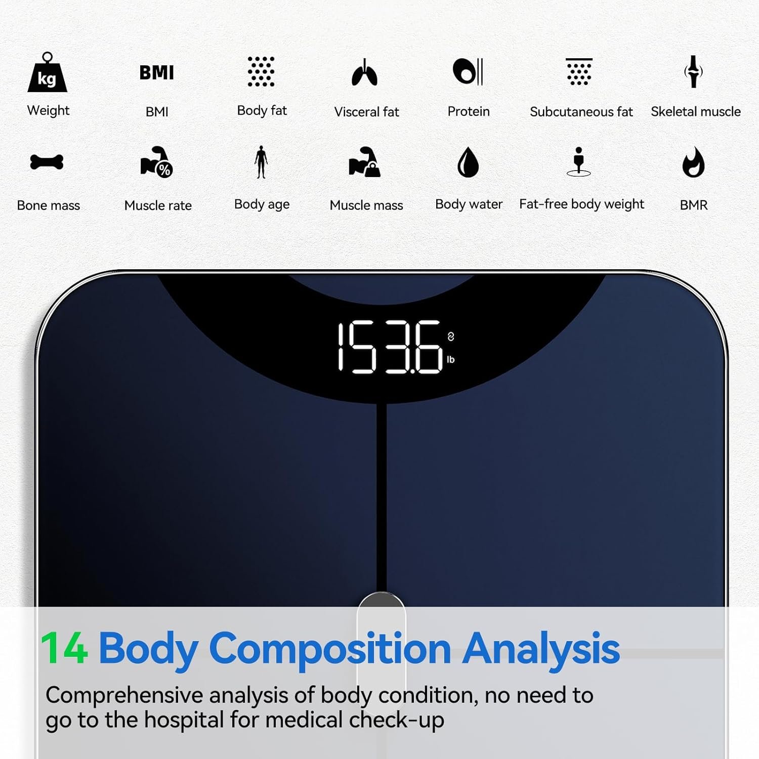 The Smart Scale for Body Weight offers a complete analysis of your body composition with measurements for 14 different indicators including body fat percentage, muscle mass, and BMI. By providing detailed insights into your physical health, this scale helps you make more informed choices regarding your diet and exercise routines, enabling you to achieve your fitness goals faster.