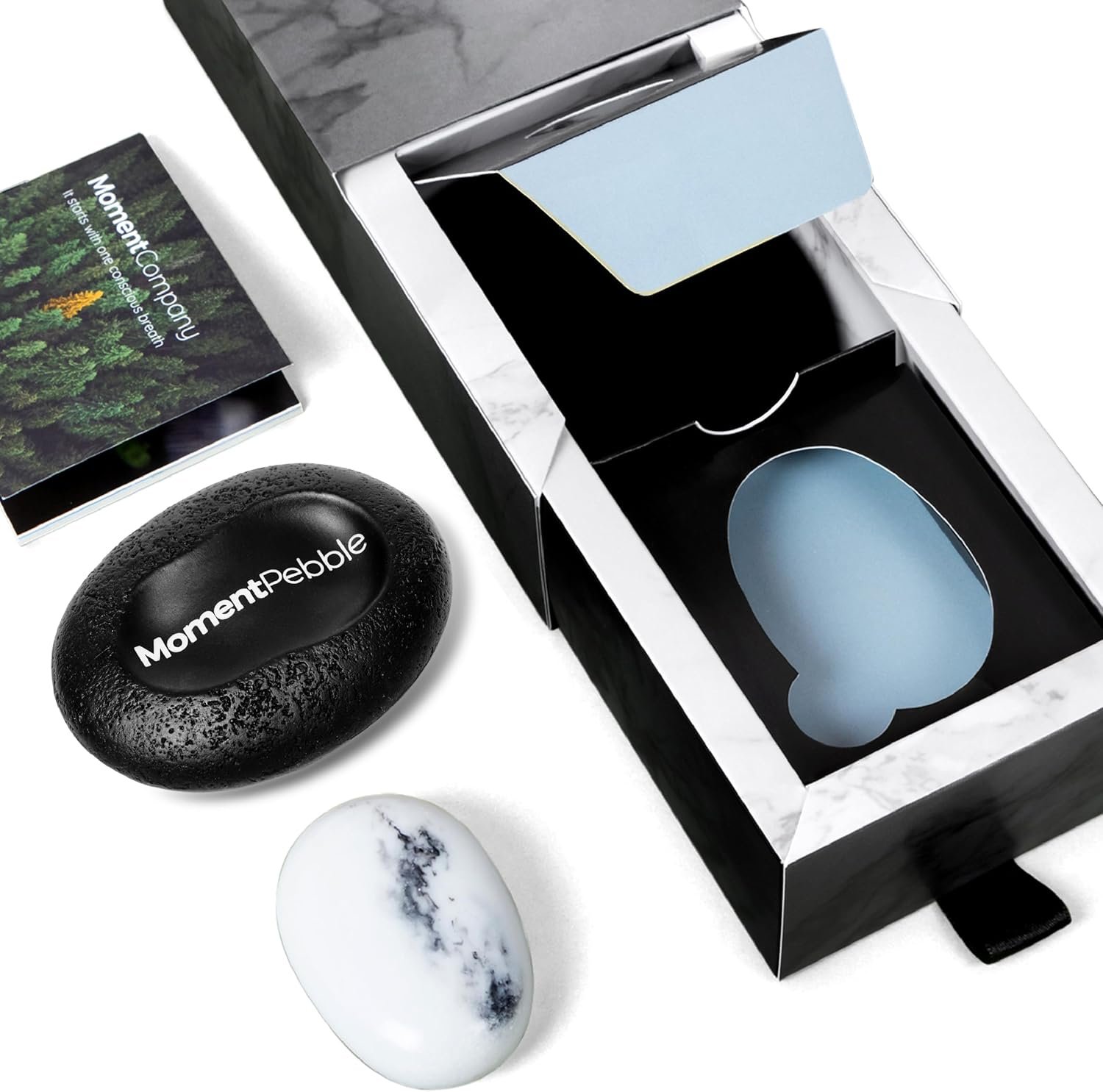 In addition to the worry stone anxiety device, you’ll receive a wireless charging dock, a 30-page moment book, and access to a 4-week online wellbeing program. This complete wellness kit provides you with all the tools you need to achieve holistic stress relief and improve your overall well-being.